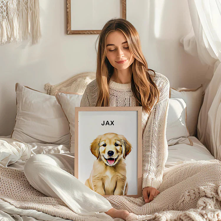 Celebrate the bond between you and your pet with this one of a kind, modern pet portrait that matches the aesthetic of any room. This pet portrait featuring your best friend will become a statement piece of your room and most definitely a conversation starter while matching your décor perfectly.